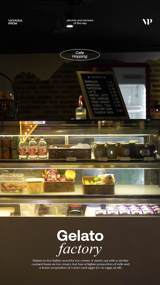 Welcome to Gelato Factory, an enchanting cafe located at 44 Street 123, Phnom Penh. This charming spot captures the essence of exquisite gelato, marrying rich flavors with a light texture that sets it apart from traditional ice cream.